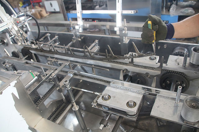半自動裝盒機只有封盒功能的紙盒包裝機,又稱“封盒機”。半自動裝盒機,需用手工開盒、裝盒,再將裝有物料的盒子經過機器封盒。自動裝盒機帶有自動開盒、入料、封盒功能的紙盒包裝機。全自動裝盒機帶有自動放料或與